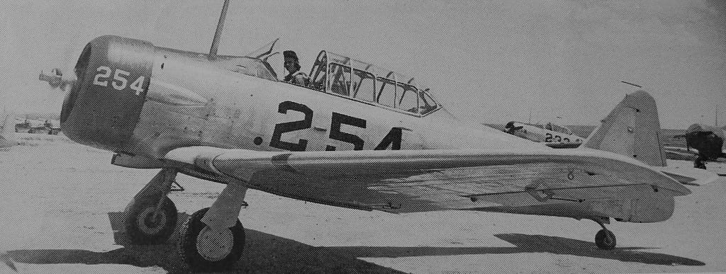 “The sun beating down from a cloudless sky sent glints of light flashing from the AT-6 combat trainer. The ship came in smooth as a dream, taxied to a stop, and out stepped an “angel,” shedding her man-made wings.