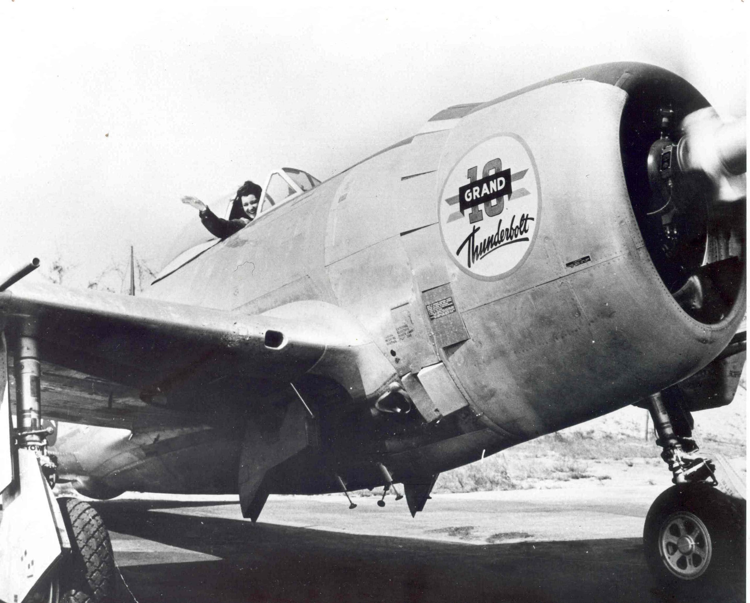 The WASP P-47 squadron was formally honored at the ceremony and WASP Teresa D. James flew ‘Ten Grand’ on its first leg of its journey for shipment overseas. James would fly more Thunderbolts than any other pilot during the war, ferrying them from Republic to the point of embarkation in Newark.