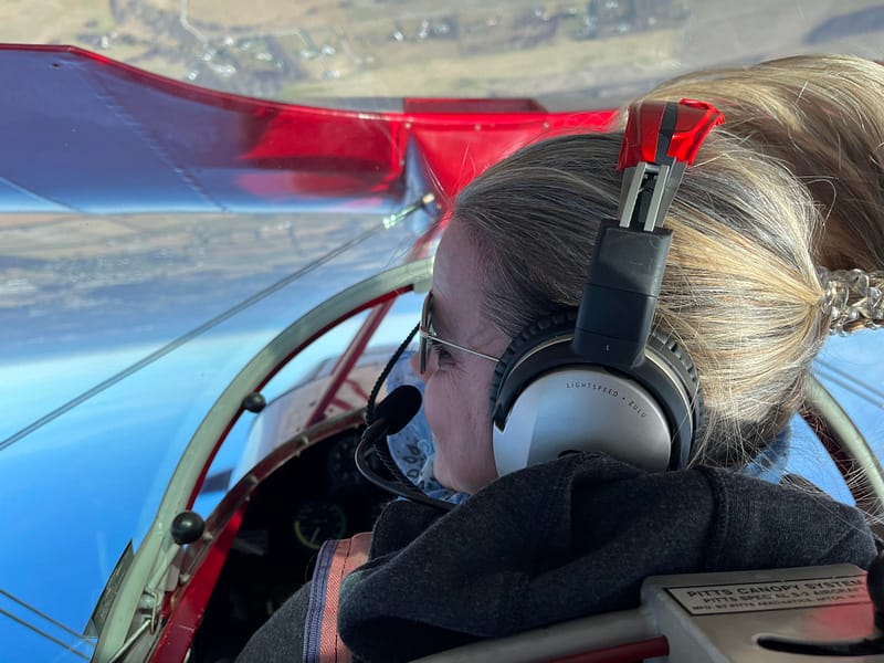 Further inspired by her grandmother, Erin earned her pilot license in April 2023, followed by her tailwheel endorsement with aerobatics instruction. In December 2024, she completed her instrument rating and is currently working on her commercial certificate. Erin then plans to get her instructor certificate in order to instruct on tailwheel airplanes.