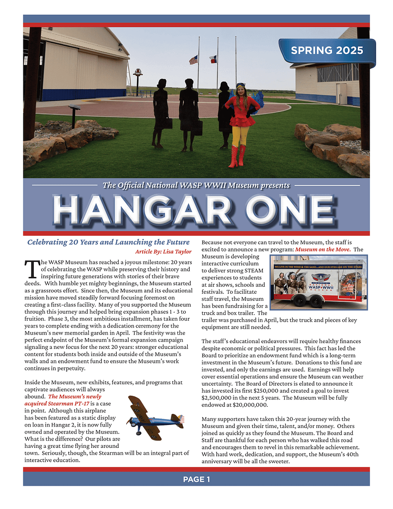Happy Spring! Keep updated with the latest news, articles, and events at the WASP WWII Museum by reading our monthly newsletters. Subscribe to our mailing list to get exclusive WASP […]