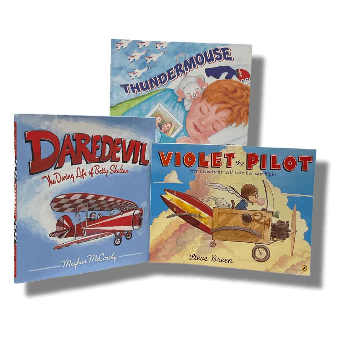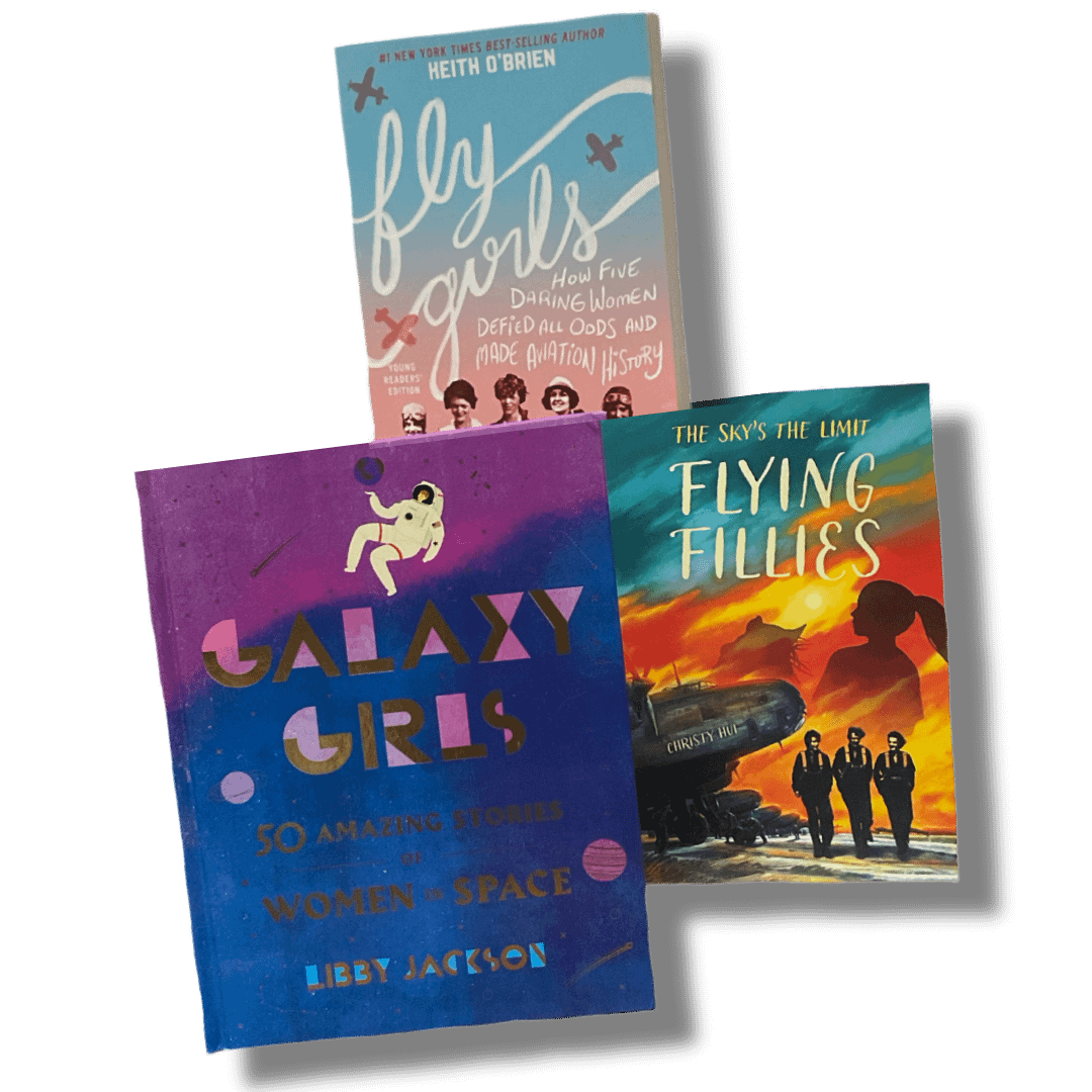 The Museum has created four, three-book bundles of WASP and female aviation books aimed at ages K-12. Purchase our book bundles for sale and receive a 20% discount off the regular price. Each book will come with a custom dedication that will have listed: