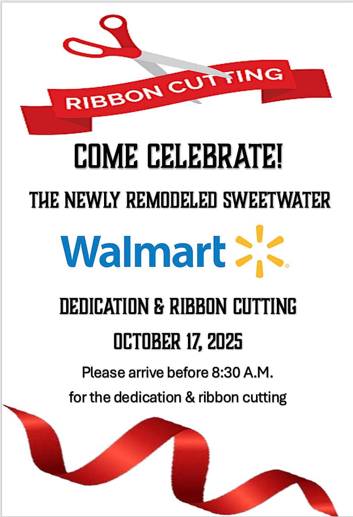 The newly remodeled Sweetwater Walmart dedication & ribbon cutting with NEW mural! Please arrive before 8:30 am for the dedication & ribbon cutting