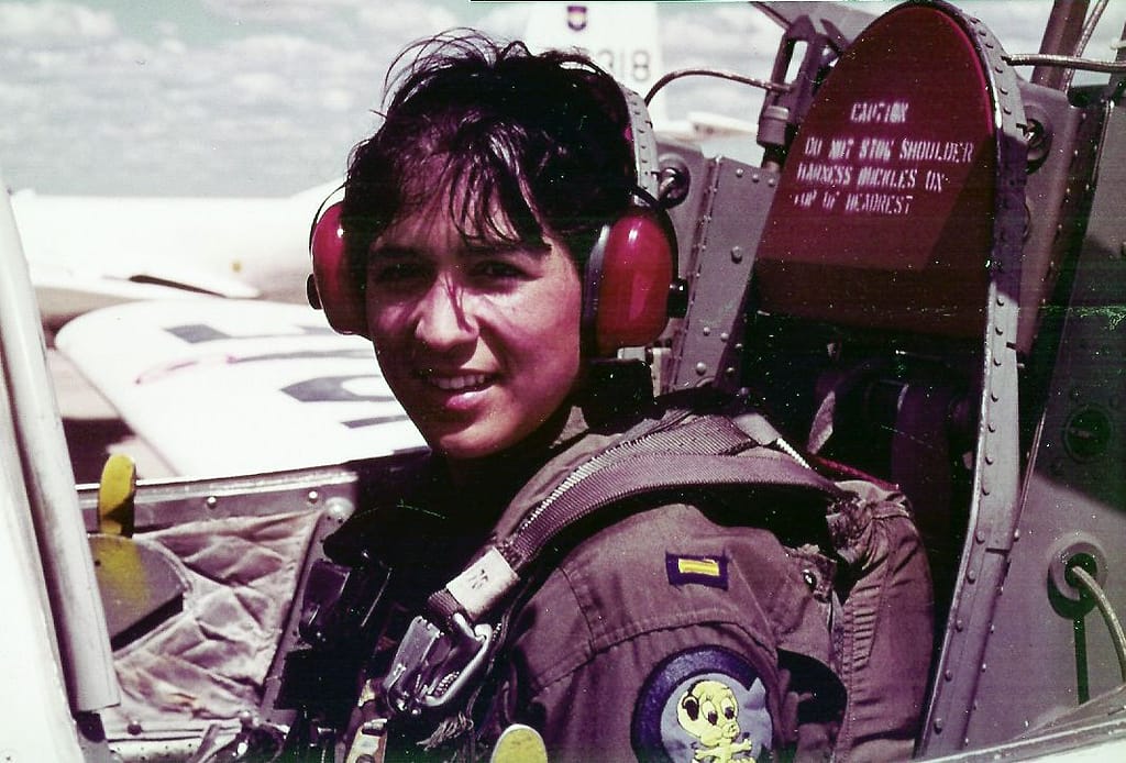 Olga is also a Retired Lt Colonel from the United States Air Force (USAF) Reserves with 24 years of service. She received her commission through Officer Training School in 1980. She was the first Hispanic female to graduate from USAF Undergraduate Pilot Training (UPT.) Graduating in the top 5%, she received her fighter pilot qualification and became the first female T-38 UPT flight instructor at Laughlin AFB and then the first female T-38 Pilot Instructor Training (PIT) flight instructor at Randolph AFB. She was awarded the Air Force HQ Air Education and Training Command (AETC) Aviation Safety Award for superior airmanship during an engine failure bird strike emergency and executing a safe heavy-weight landing in weather minimums.